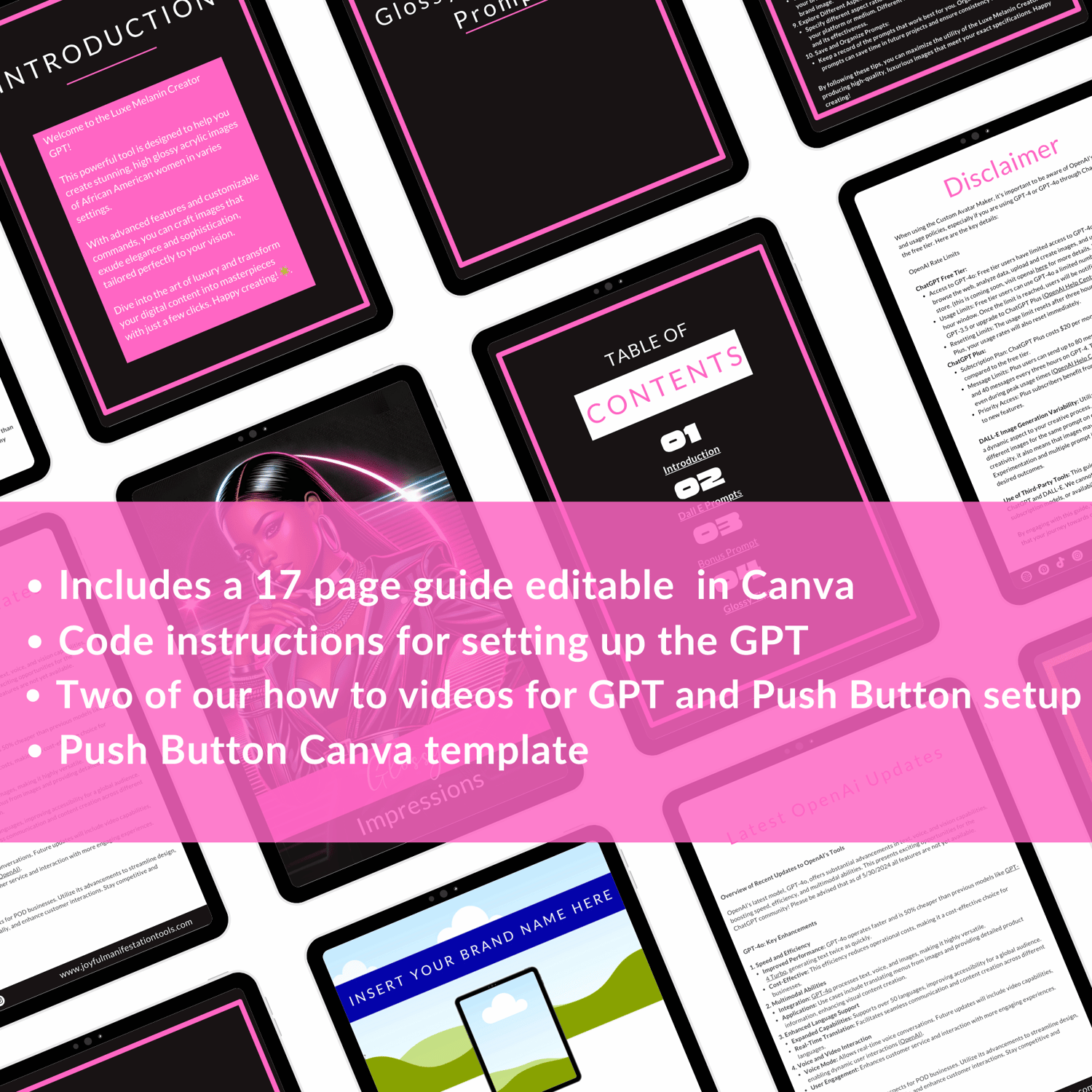 - A beautifully designed Canva template that is a detailed guide for your custom GPT. This guide includes the code instructions, comprehensive instructions for setup, and usage.