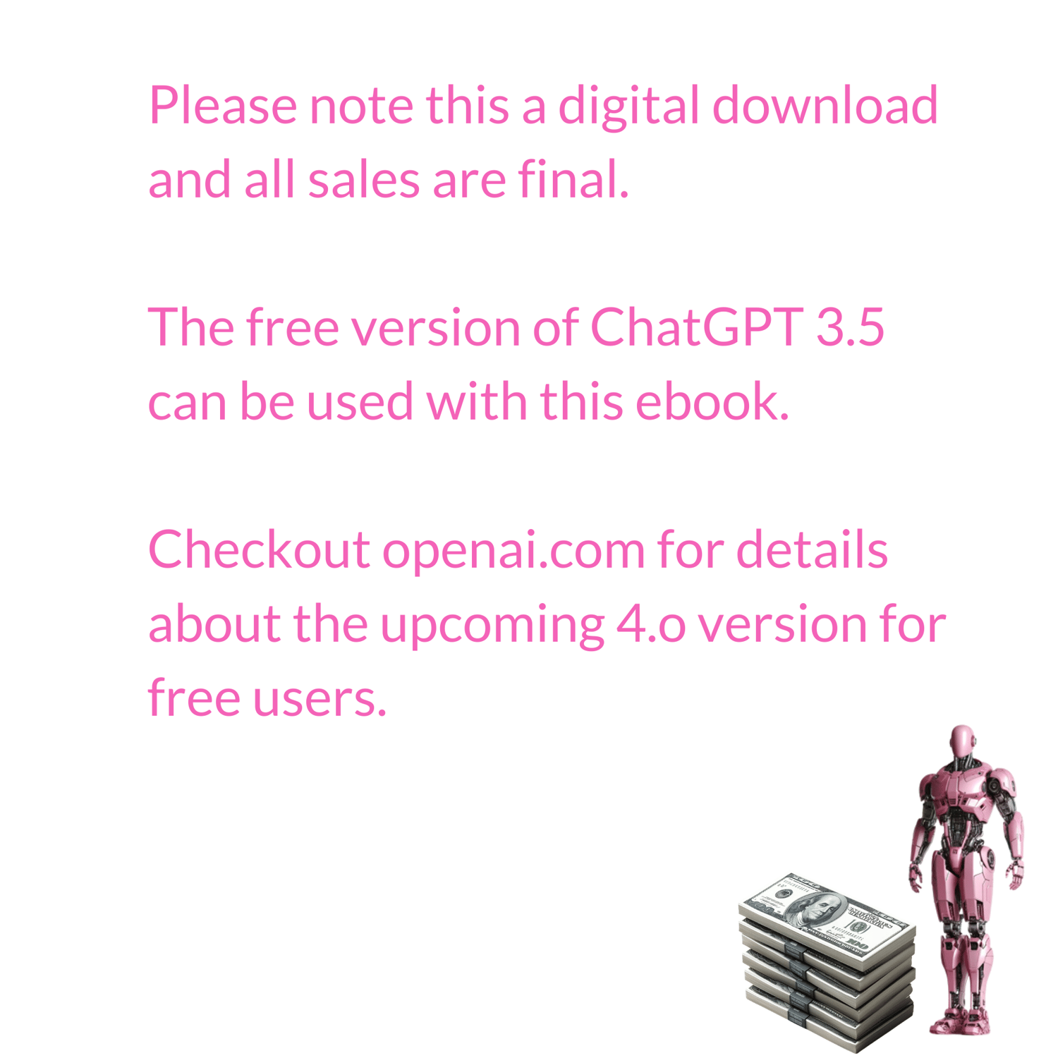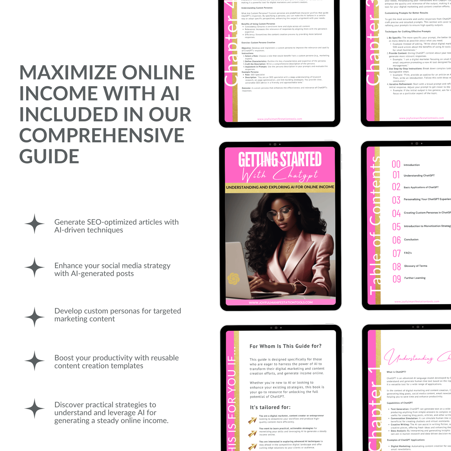 Comprehensive Guide: From foundational knowledge to advanced techniques, this ebook covers everything you need to know about using ChatGPT to make money online.